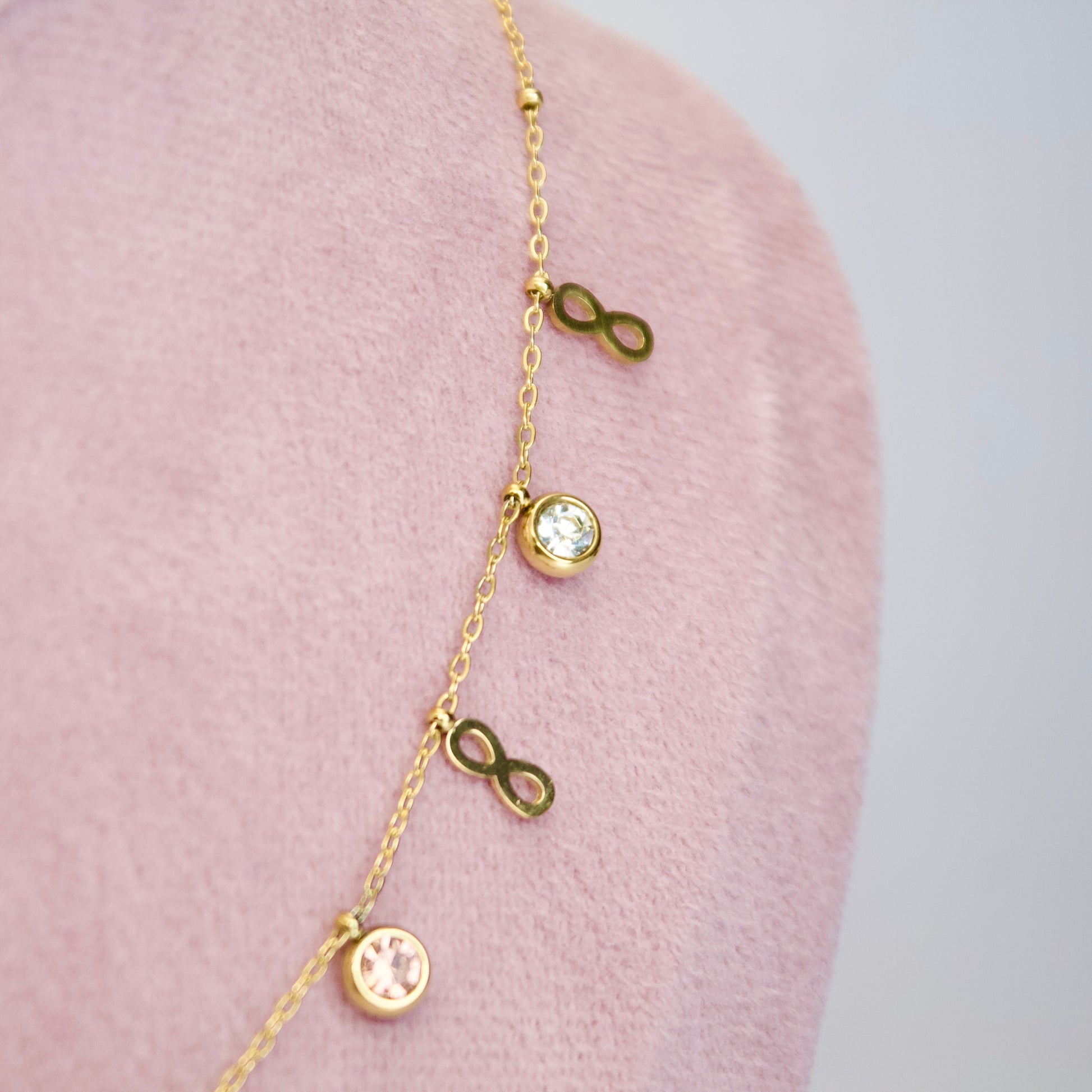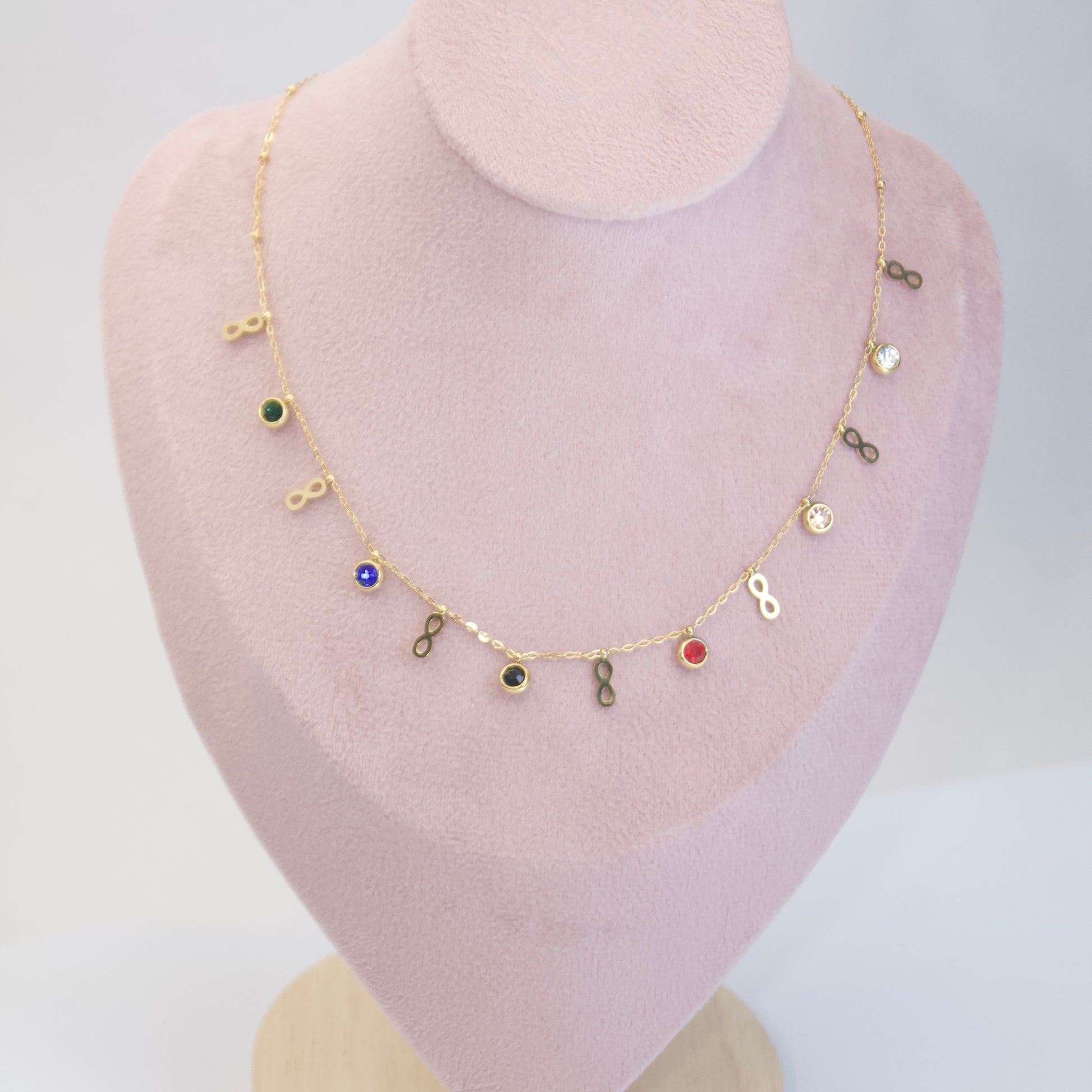Colorful Gemstone and Infinity Charm Necklace