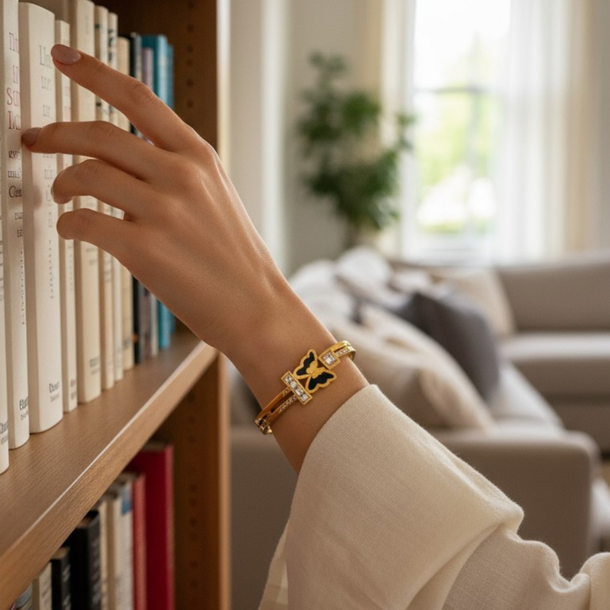 Delicate butterfly in black enamel with crystal accents - an elegant blend of whimsy and luxury
