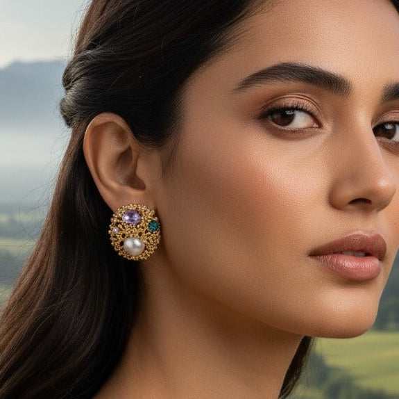 Regal Cluster Studs Green & Purple
