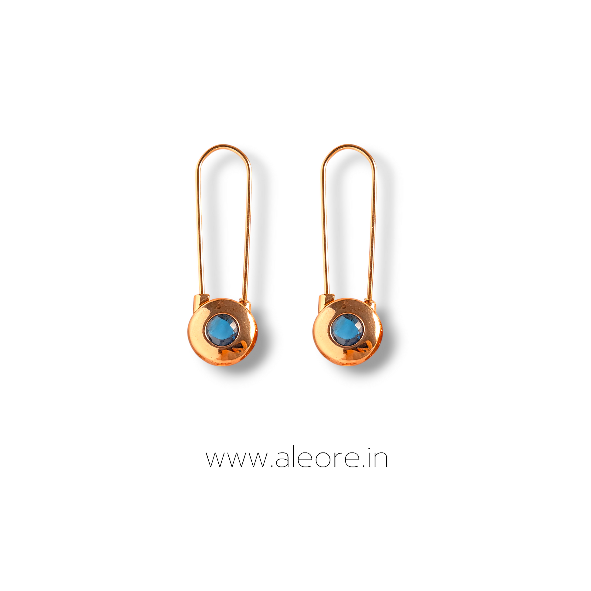 These edgy yet elegant earrings reinvent the classic safety pin design. Made with a lustrous gold finish, each pin is accented with a deep navy-blue stone, offering a subtle pop of color and a touch of sophistication. They are a unique statement piece for anyone who wants to add a modern, rebellious edge to their style.